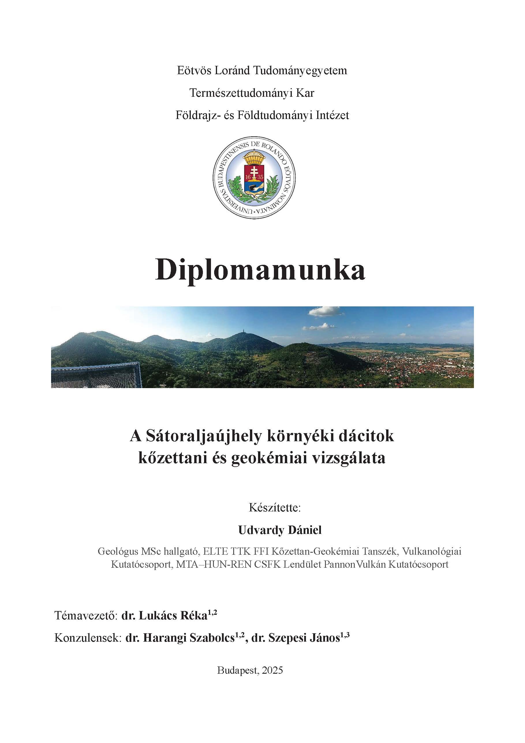 Témavezetője: Lukács Réka, konzulensei: Harangi Szabolcs és Szepesi János.
